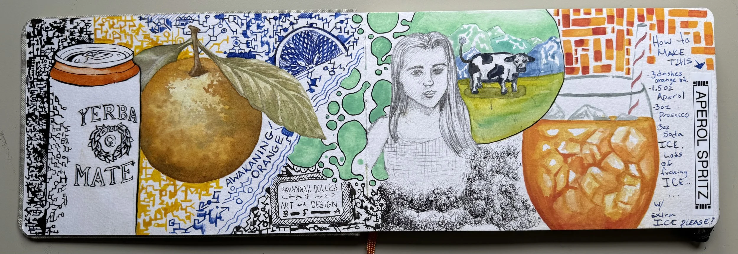 Gallery Espresso. Savannah’s very own Central Perk. Sara and I’s favorite place to go and get some work done, grab a coffee, people watch out of the corner of our eyes, and just hang out. This one is inspired by our time in the coffee shop after coming back from Europe, where I may have tried an Aperol Spritz or 20. A true running of surroundings and just my conscience while sitting there, Sara sitting and working on homework, and I am sure she was really just daydreaming about cute cows in fields. Aperol Spritz now being sold at Gallery Espresso, uh oh, watch out. And my favorite flavor of Yerba Mate. Yes I know, what a hot take. Gallery Espresso makes it impossible not to fall in love with that person you have sitting across the table from you over and over again for the hour or two that you sit there and enjoy a nice mocha or vanilla iced coffee with oatmilk. You should take whoever you want to fall in love with you there. They won’t know what hit them.