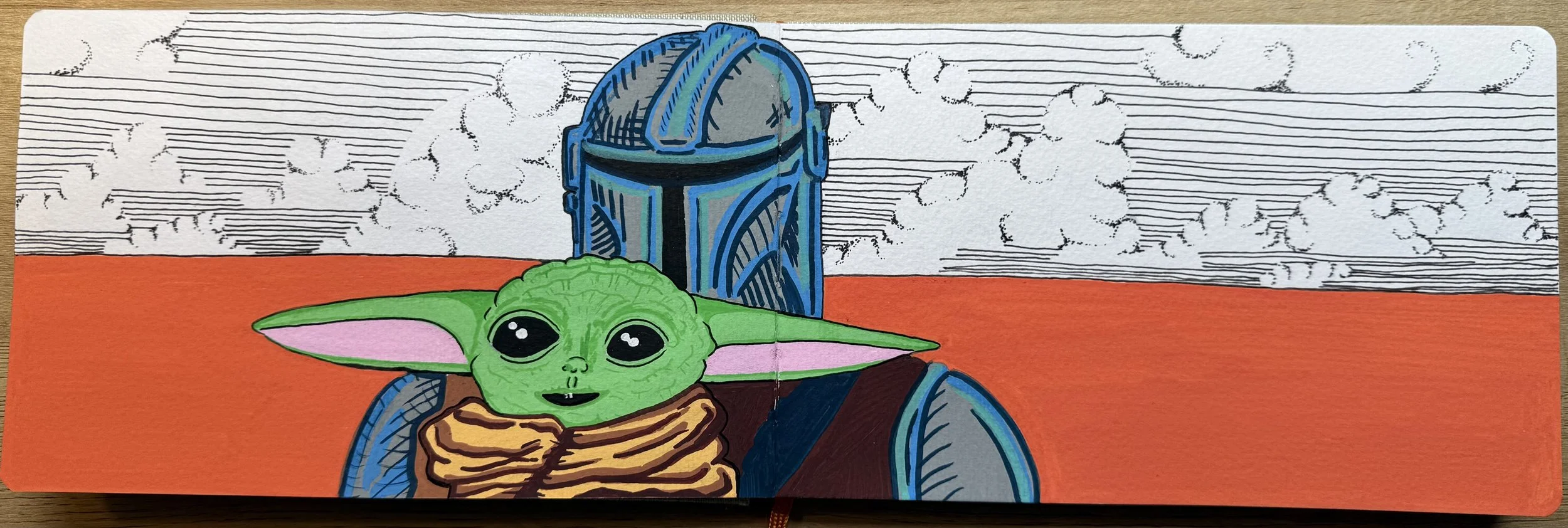 Just a little bit of fun while watching The Mandalorian. Seems like Pedro Pascal was in just about everything I watched this past year. Super excited to be heading home to see my family and some friends over labor day weekend. Work is finally picking up after the summer season so I have had less time to create, but my sketchbook is still seemingly filling up with tons of random materials and subjects of the world around me and ideas that pop up. Been lacking in posting so I might post a few today just to keep myself motivated to create more quickly! If you haven’t seen the Mandalorian, check it out! I promise Grogu is cuter in the show :p